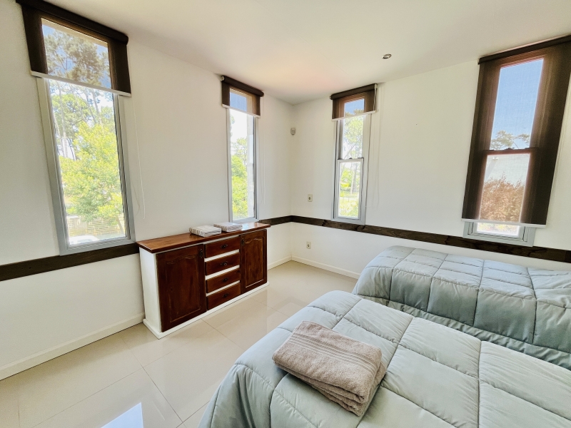Planta alta: Segundo living amplio. Tres dormitorios, uno en suite. Capacidad total para 10 personas.