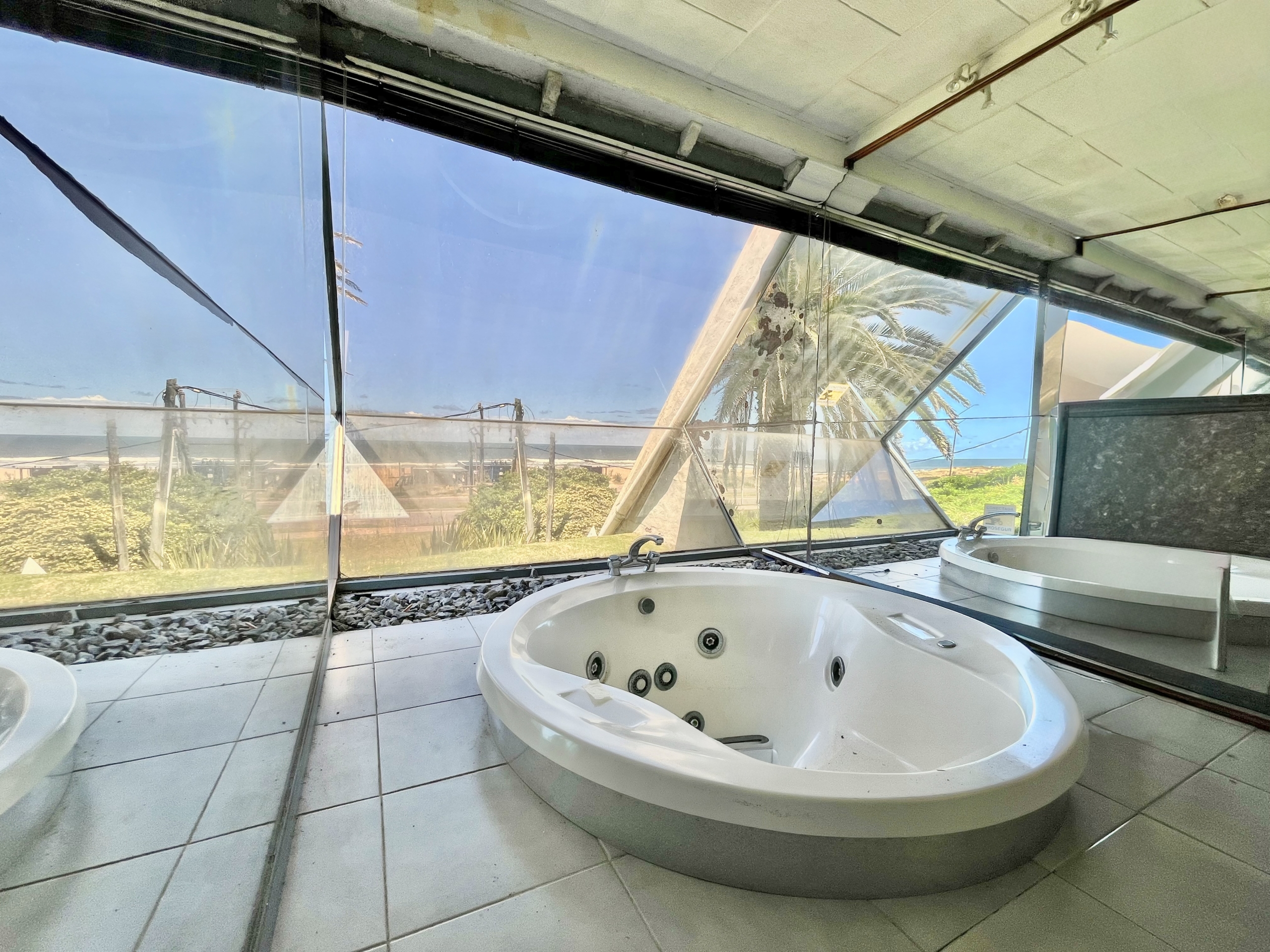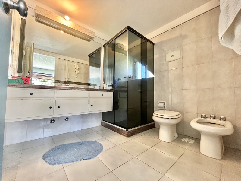 La casa cuenta con tres dormitorios en suite, destacándose la suite principal con vista directa al mar, vestidor y jacuzzi. Además, dispone de dormitorio de servicio con baño privado y acceso independiente, ideal para mayor privacidad.