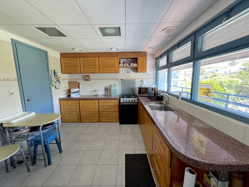 El área social se compone de un living comedor en desnivel con vista al océano, generando una sensación de amplitud y conexión con el paisaje. La cocina con comedor diario y doble circulación aporta practicidad y comodidad para el uso cotidiano.
